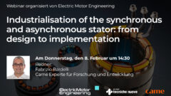 Nehmen Sie am Donnerstag, den 8. Februar, am Webinar teil. Industrialisierung des synchronen und asynchronen Stators: vom Entwurf bis zur Umsetzung